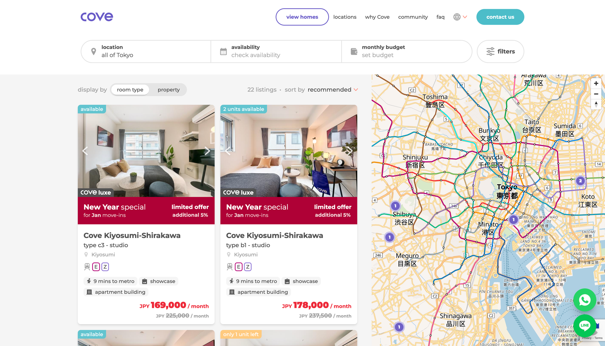 Start your search by visiting our listings page. Since Tokyo is a massive city, we have designed our filters to help you find the perfect location for your lifestyle.